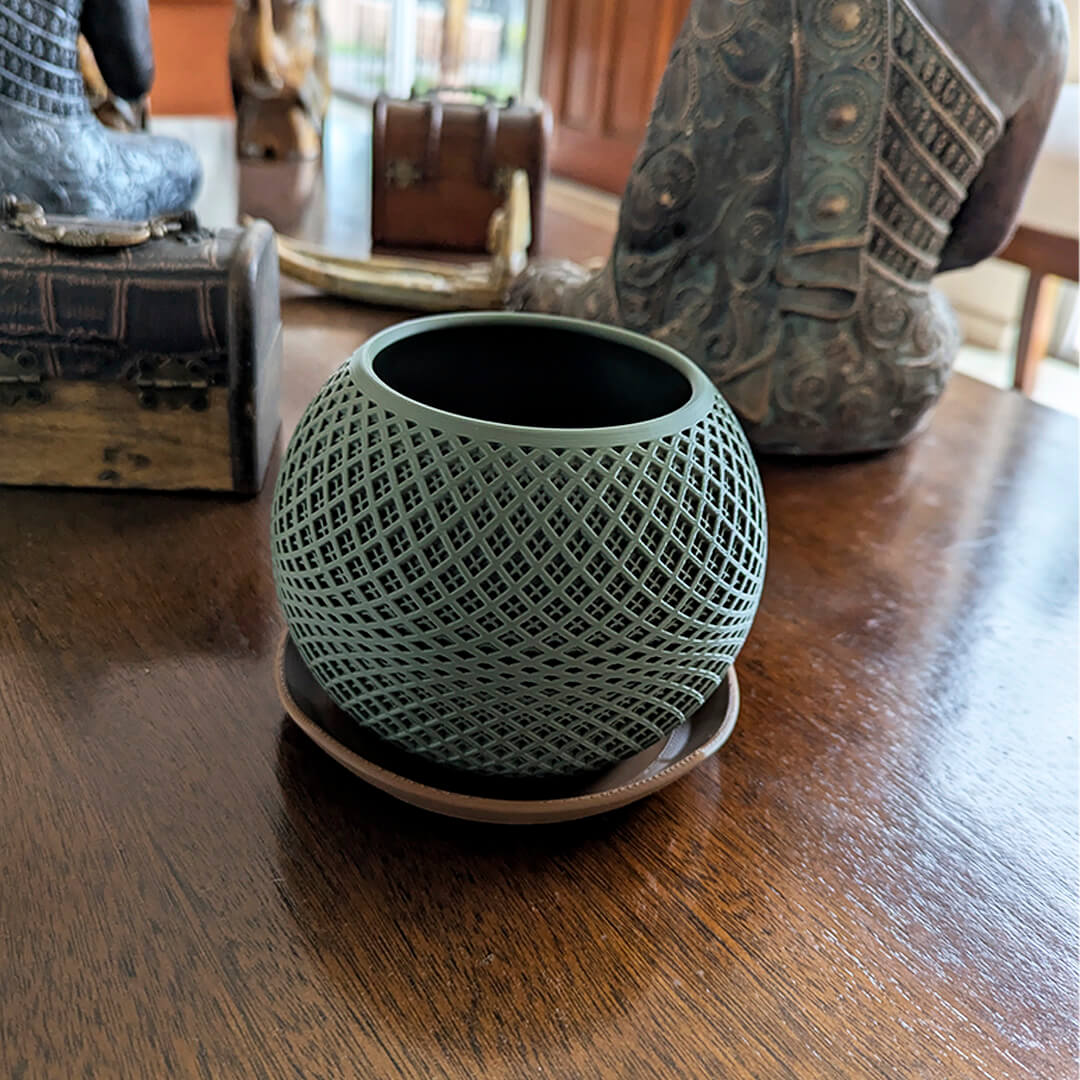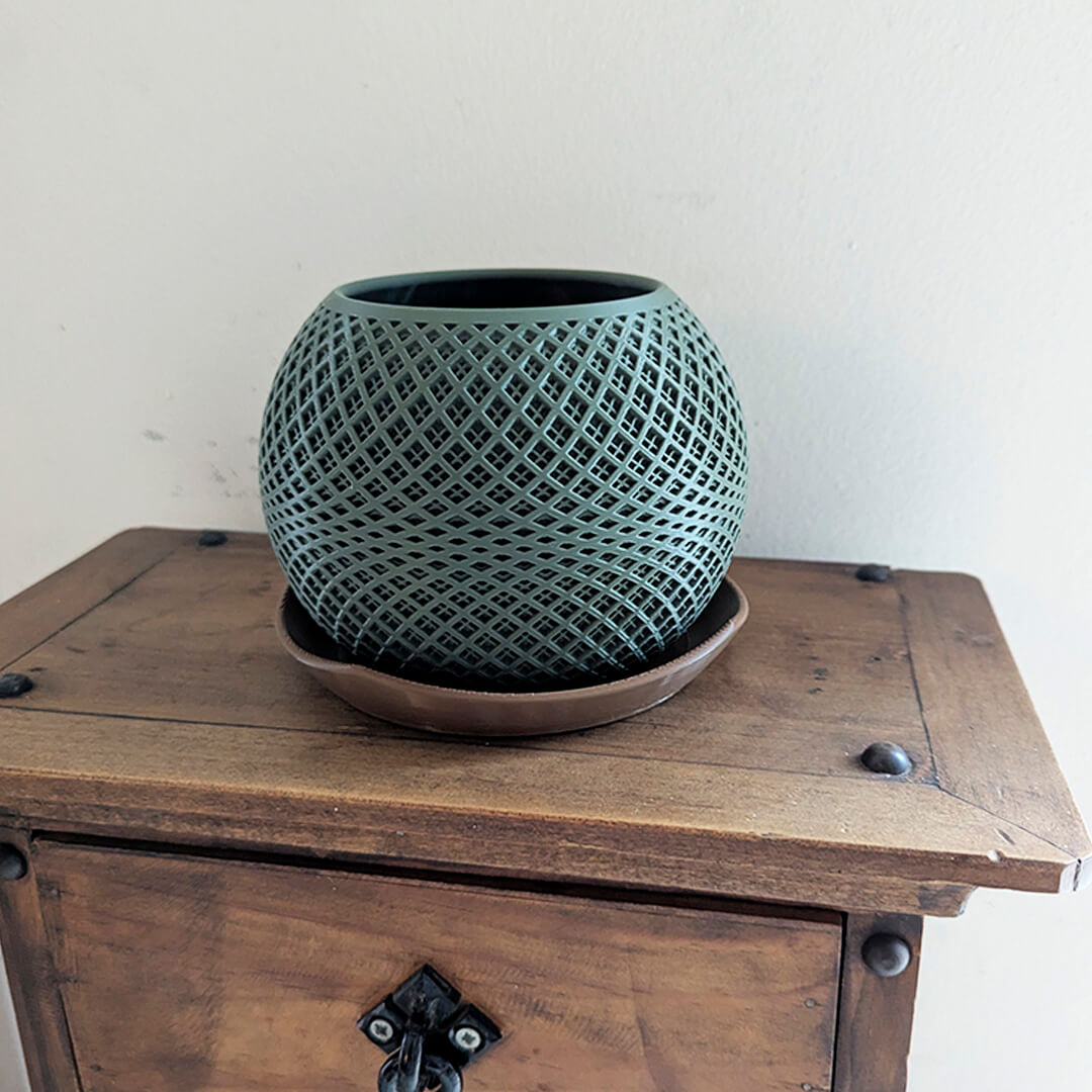 Macetero ecológico con diseño trenzado, ideal para interiores 🌿. Hecho con impresión 3D, moderno, elegante y amigable con el medio ambiente ♻️. Perfecto para suculentas y plantas pequeñas 🪴